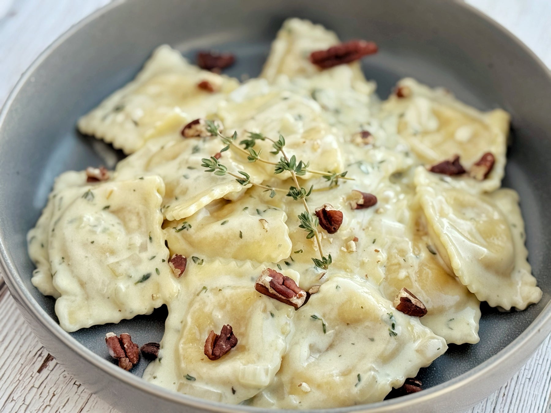 PIEROGIES WITH CREAMY TOMATO + DILL SAUCE